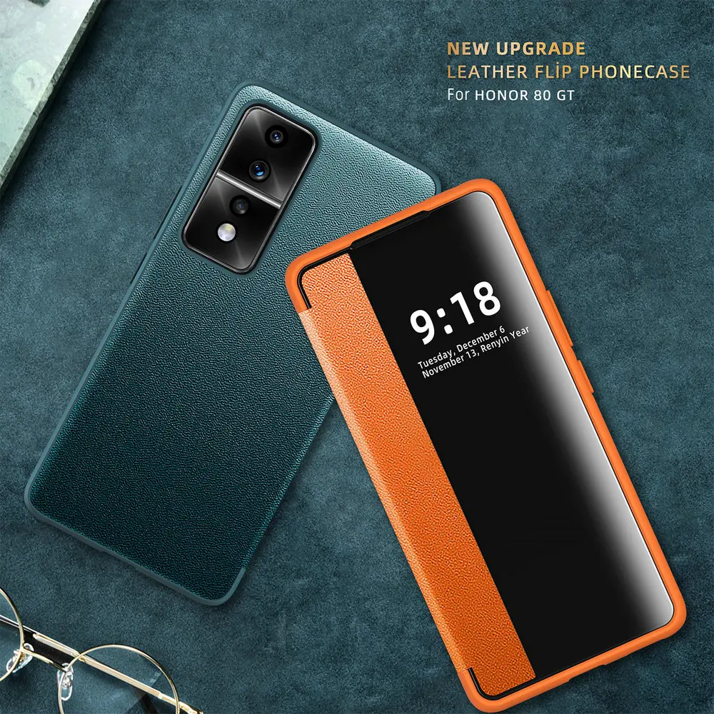 Роскошный кожаный чехол Honor 80 GT 6,67 дюйма с гладким окошком, классический откидной Чехол для Honor 80 GT, чехлы-книжки для HUAWEI Honor 80GT