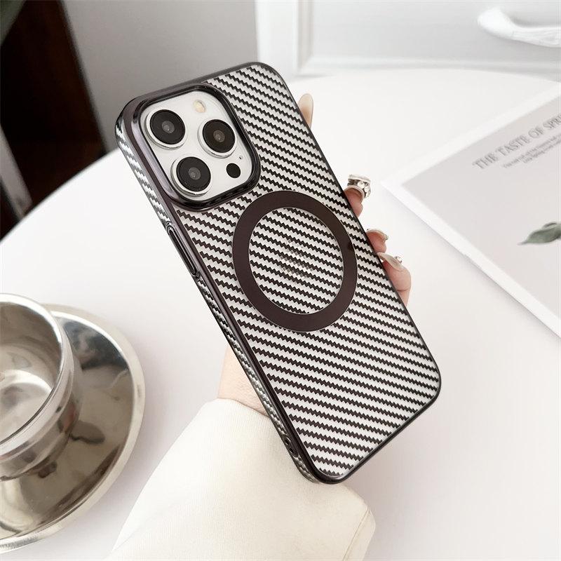 Роскошный магнитный чехол из углеродного волокна для iPhone 15 Pro Max 14 Plus 13 12 Pro, универсальный защитный чехол от падения iPhone 12 чёрный