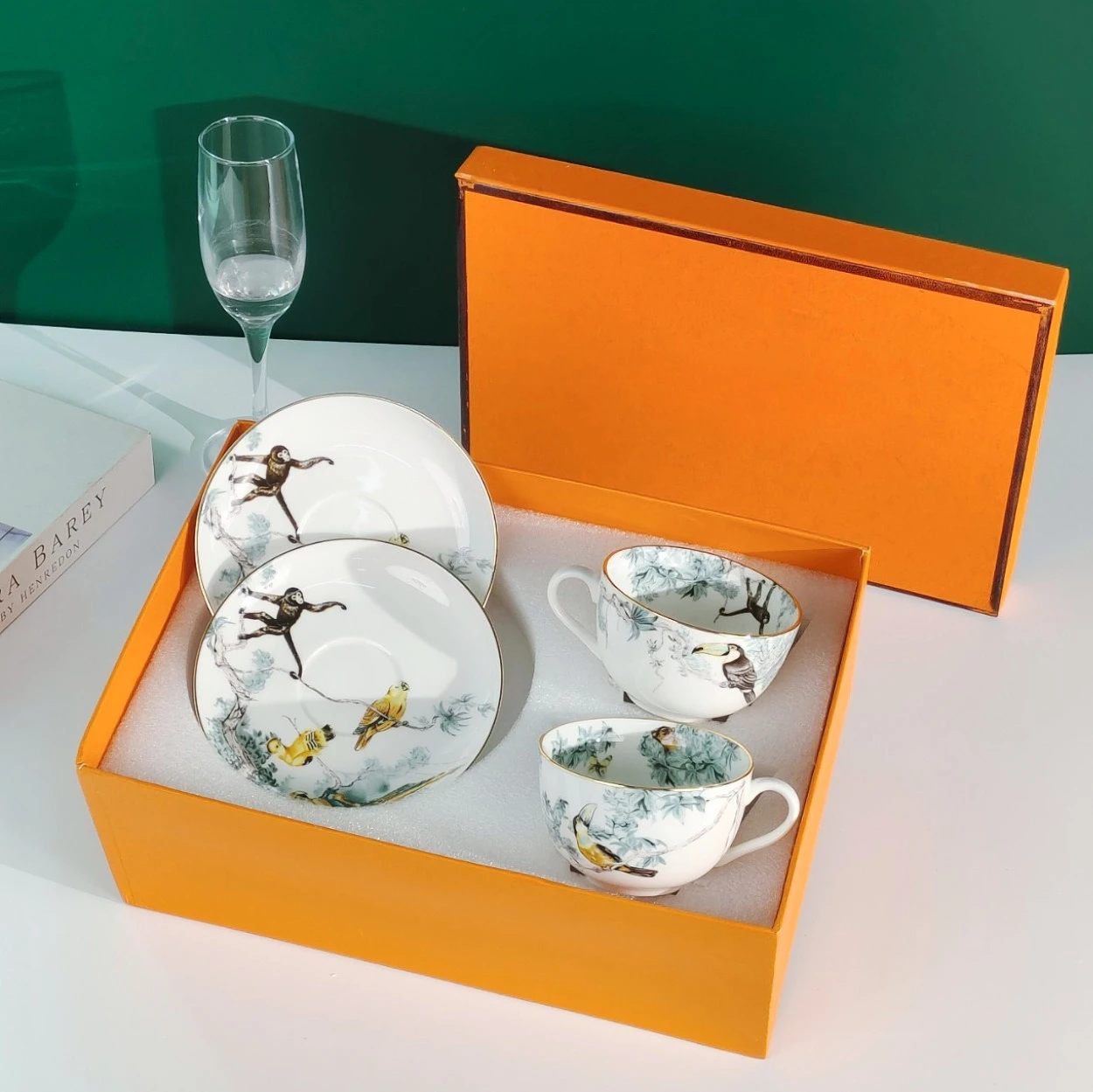 Роскошный набор кофейных чашек из костяного фарфора в джунглях, блюдца, элегантная подарочная коробка для послеобеденного чая, подарок на свадьбу, день рождения с цветочными мотивами
