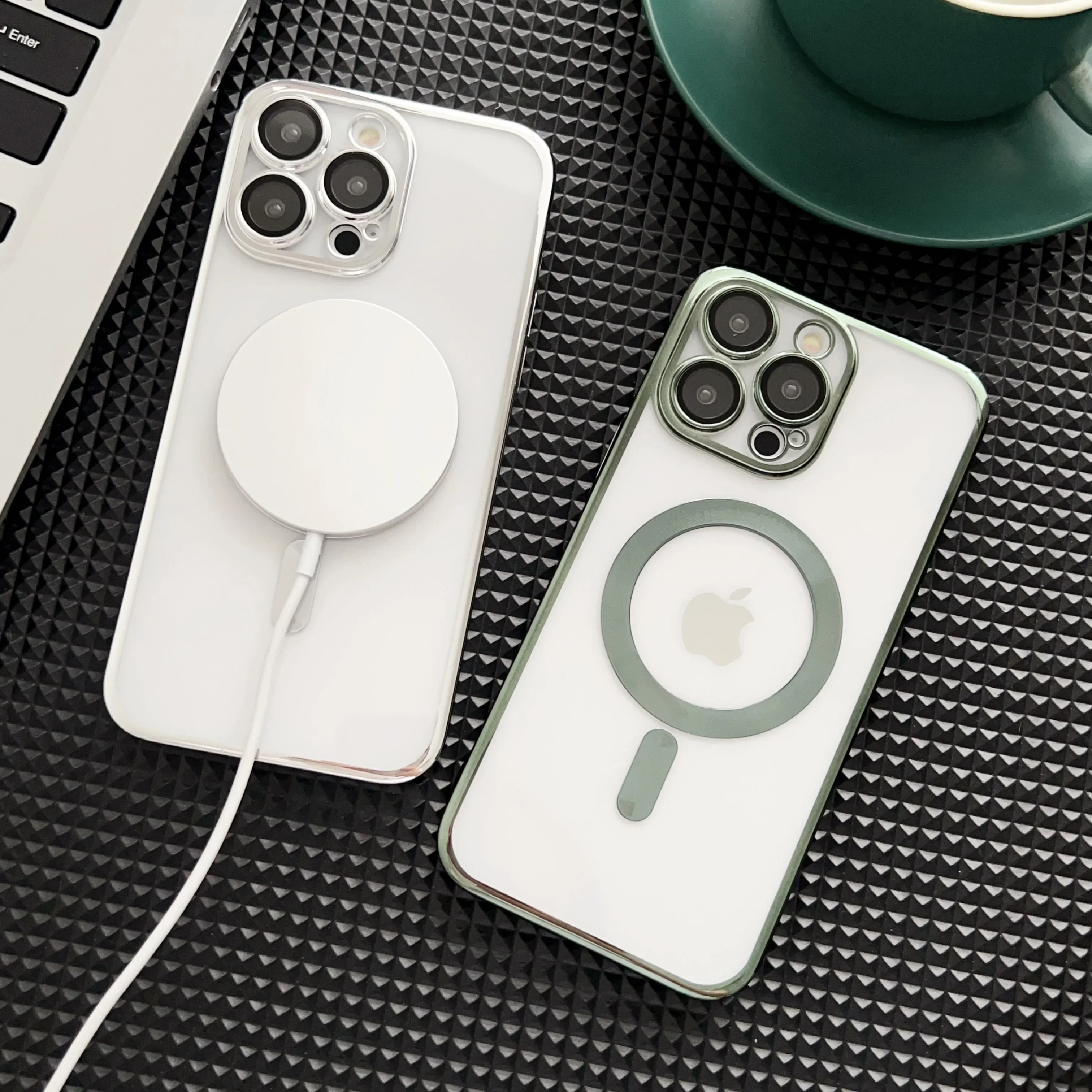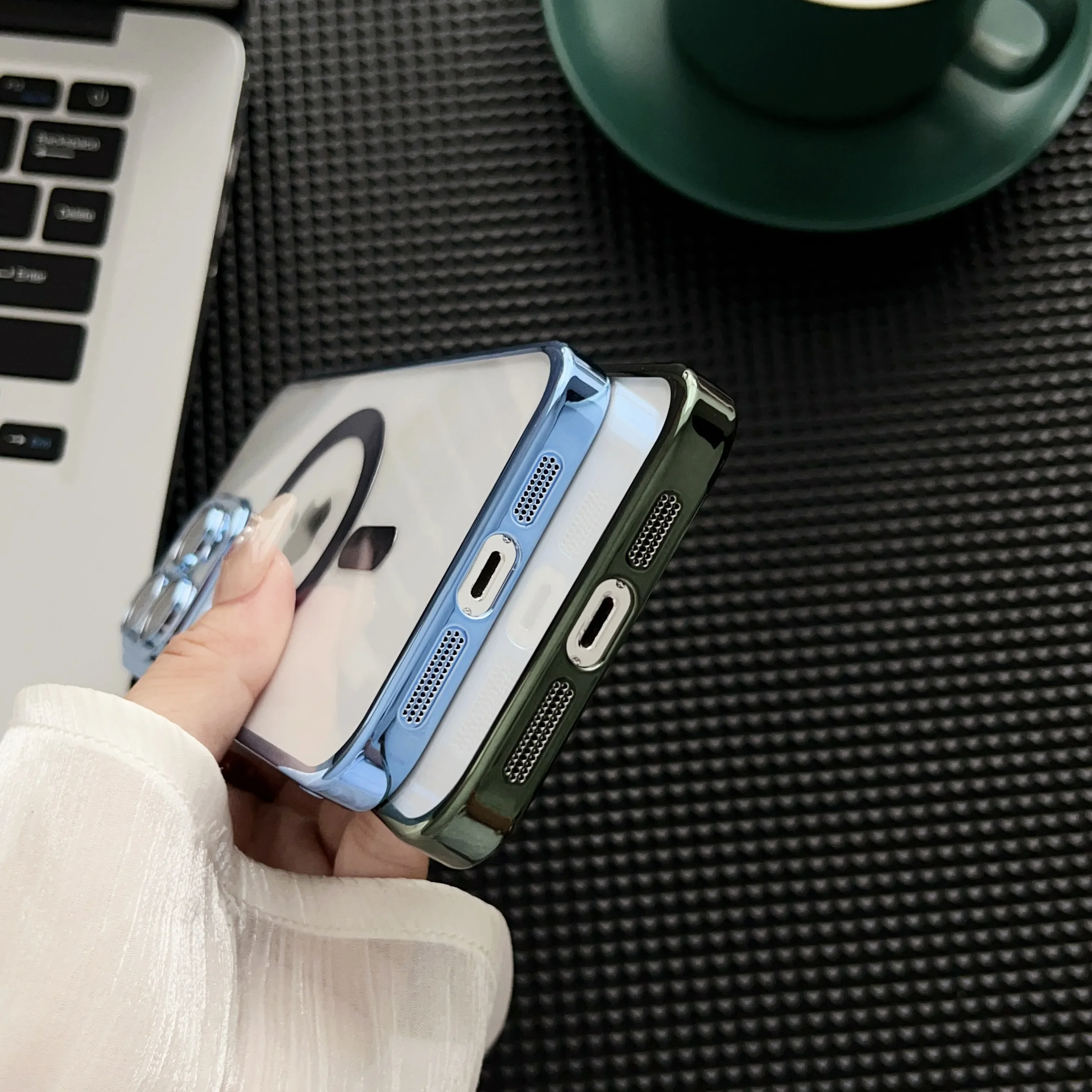 Роскошный прозрачный чехол Magsafe для беспроводной зарядки для iPhone 15 Pro Max 14 13 12 11 15 Plus, магнитный мягкий чехол с покрытием