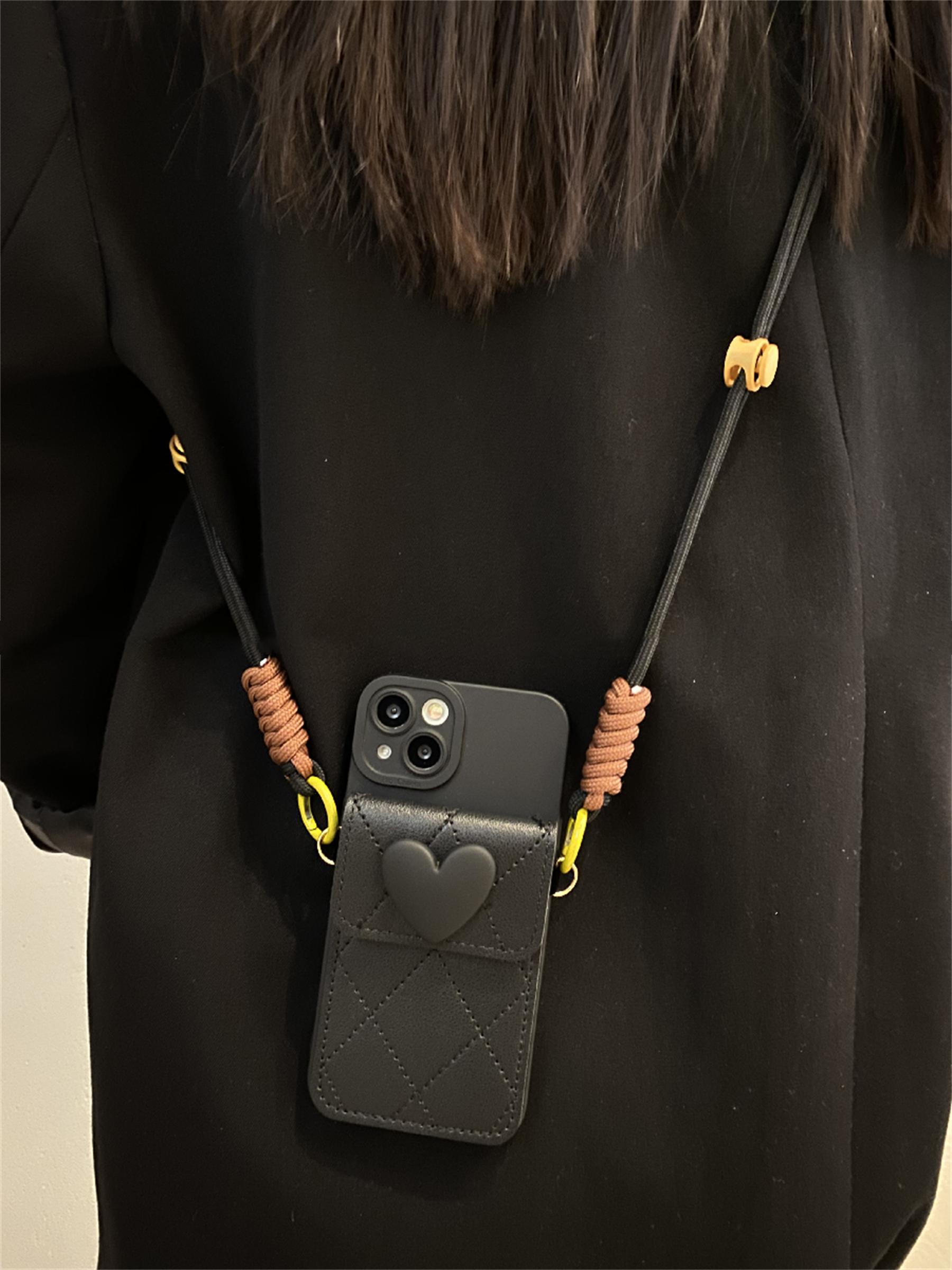 Роскошный регулируемый ремешок через плечо с ромбом и держателем для карт, черный чехол для iPhone 16 15 11 12 13 14 Pro Max, задняя крышка For iPhone 14 plus