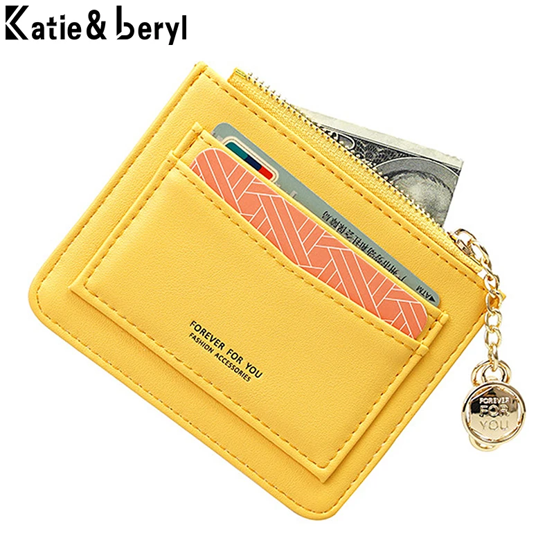 Роскошный тонкий женский кошелек и кошелек для девочек, короткие кожаные кошельки с отделениями для кредитных карт на молнии, Женский кошелек, однотонный