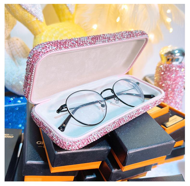 Роскошный футляр для очков с бриллиантовой инкрустацией: Элегантное и портативное хранилище для солнцезащитных очков и очков по рецепту розовый