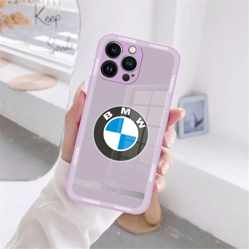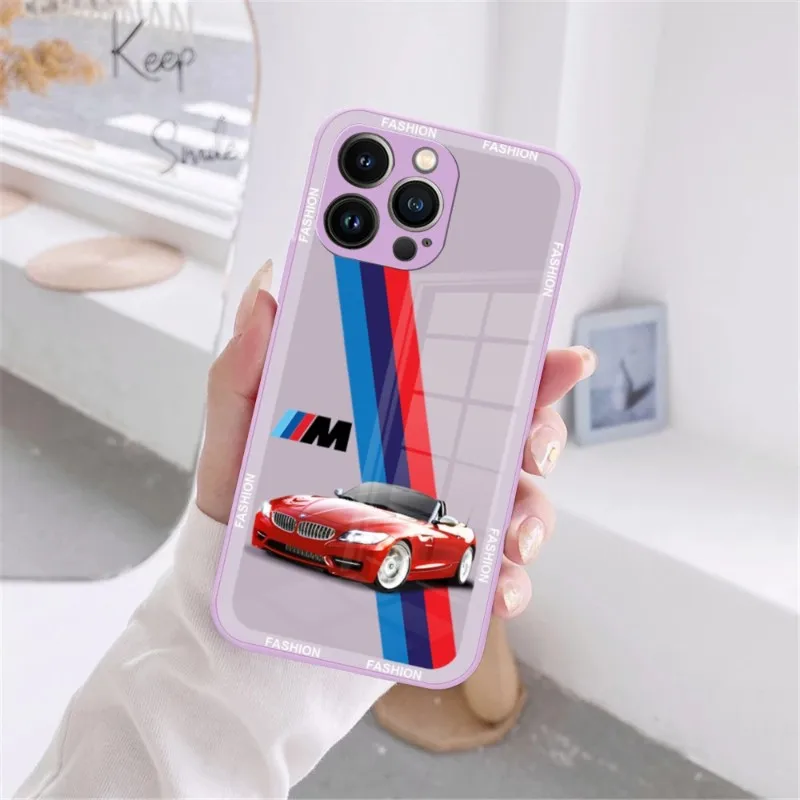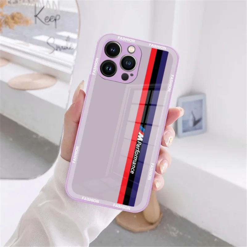 Роскошный чехол для телефона в спортивном стиле BMW, чехол с фиолетовым стеклом для IPhone 13 14 12 11 Pro Max Plus Mini X XR 8 7 6s SE2020