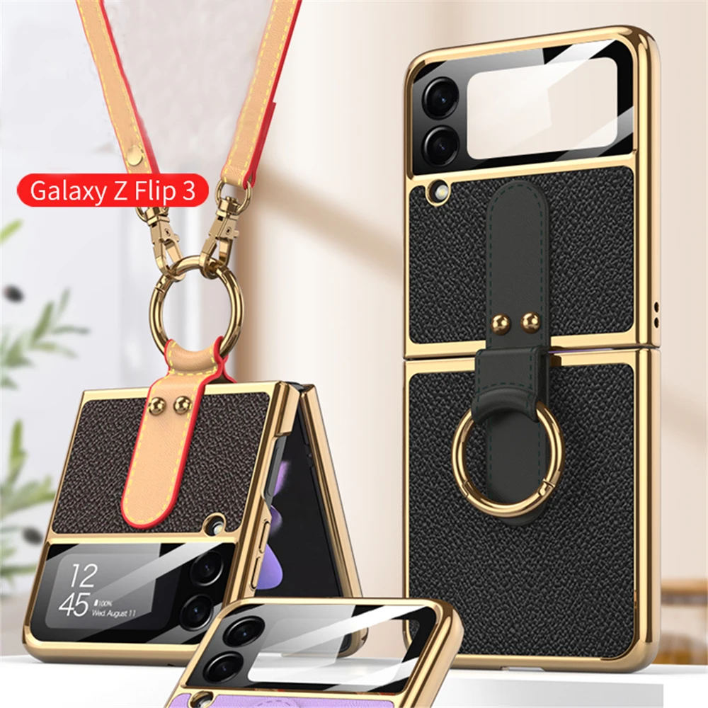 Роскошный чехол из искусственной кожи с кольцом-ремешком для Samsung Galaxy Z Flip 3