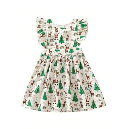 Canrulo Christmas Family Matching Clothes Sister Romper Dress Brother Shirt Cute Santa Deer Print Xmas Outfits Green Girls 2-3 Years