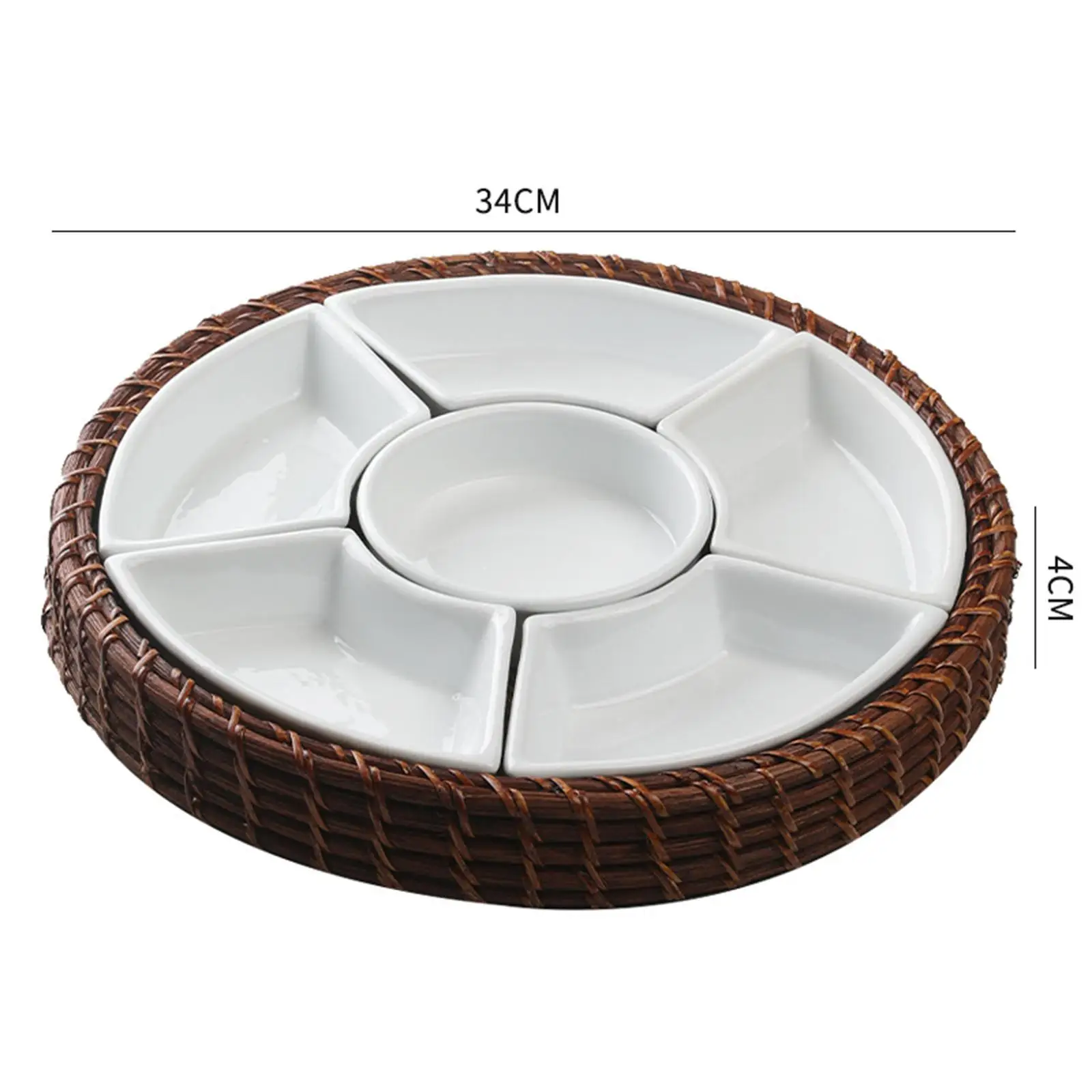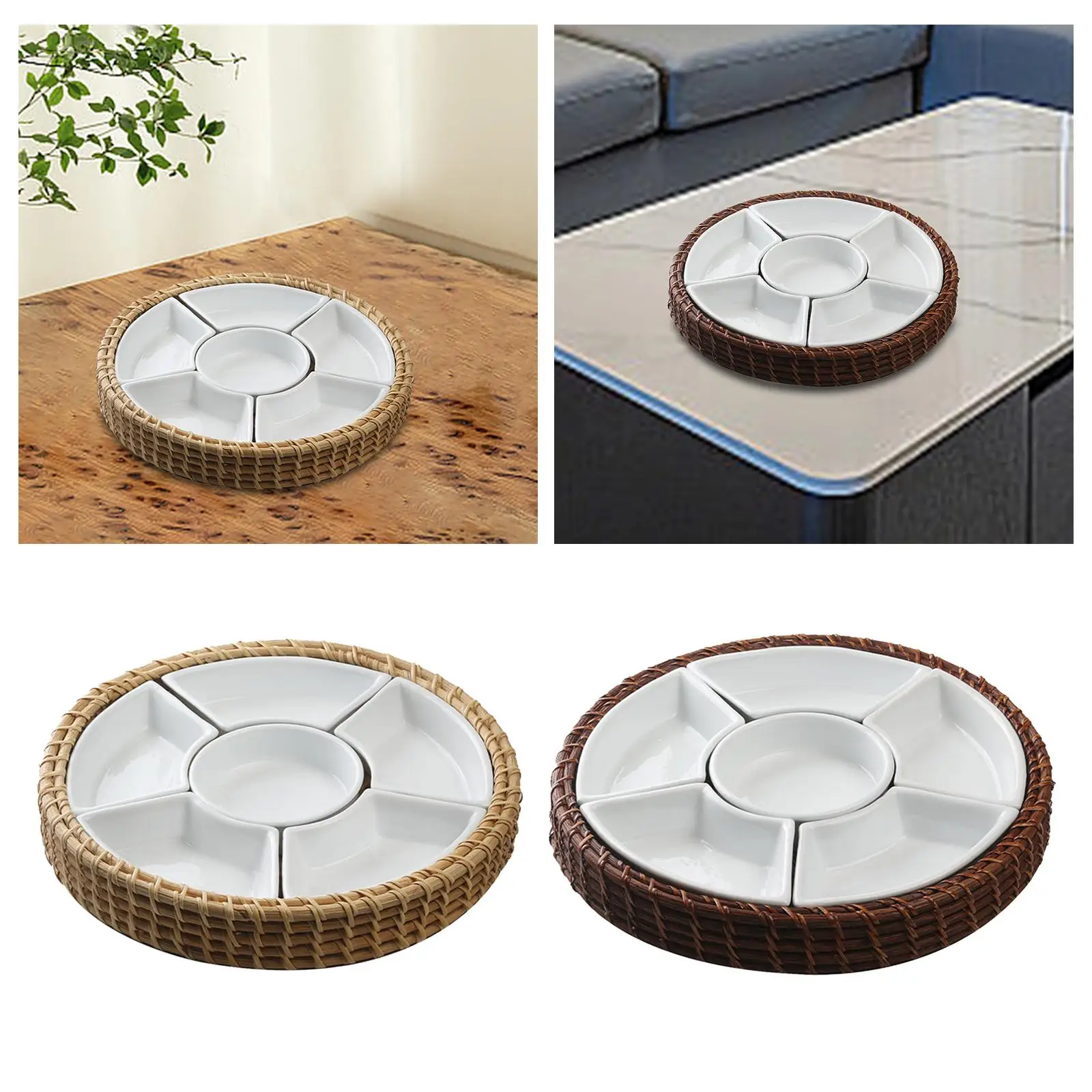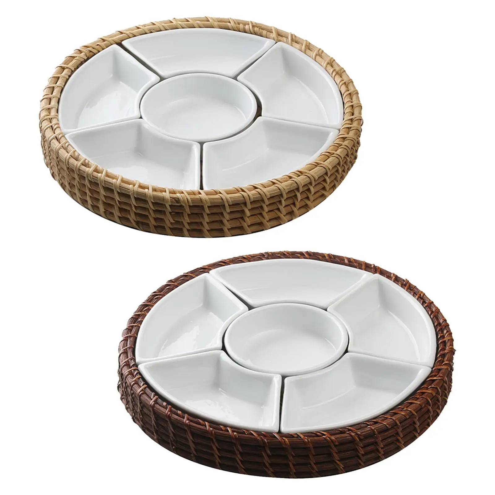 Ротанговый разделенный сервировочный поднос, сервировочный поднос для конфет, сладостей, орехов
