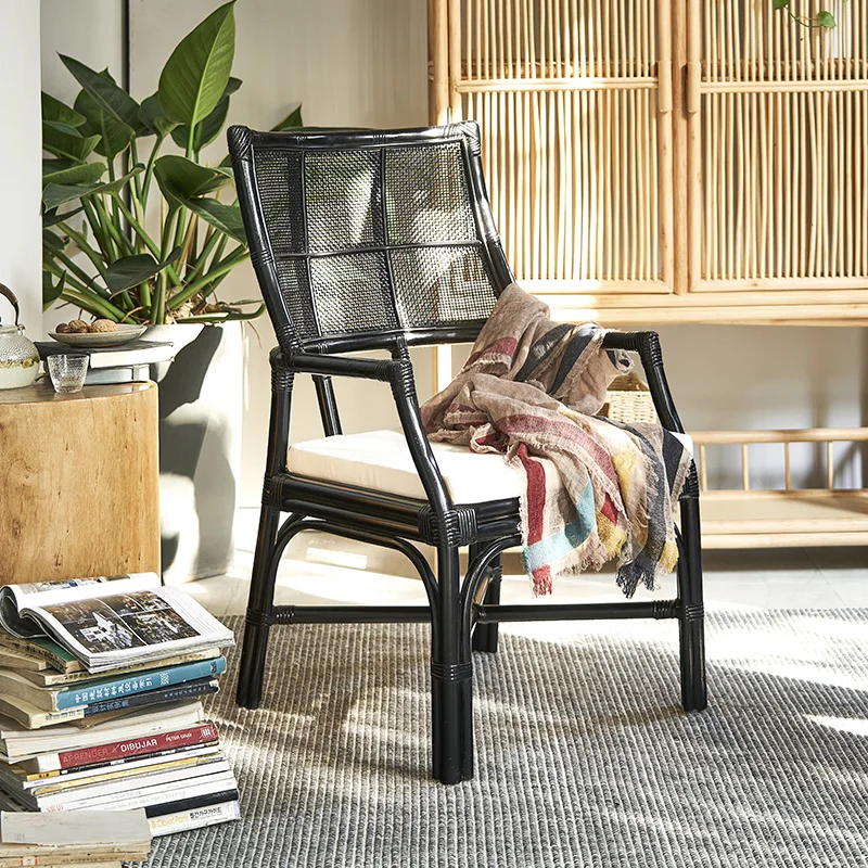 Ротанговый стул из натурального ротанга в скандинавском стиле, одинарный стул для чайного дома, спинка подлокотника, обеденный стул