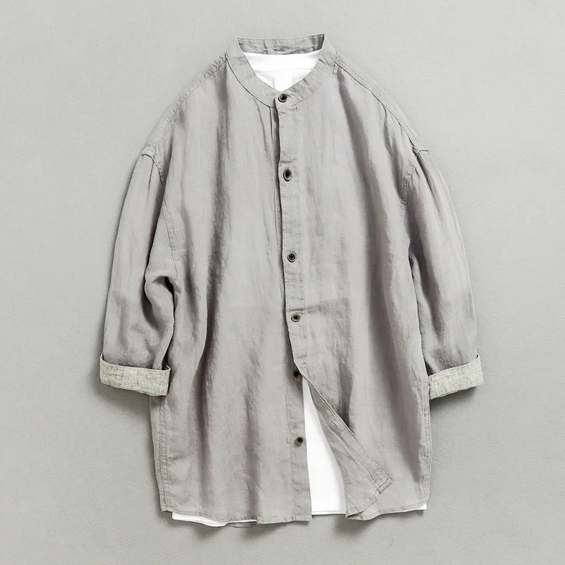 Рубашка Мужская льняная с рукавом 7 точек, Повседневная Свободная рубашка в стиле ретро, лето 3890