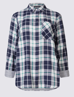 Рубашка в клетку из чистого хлопка с длинным рукавом