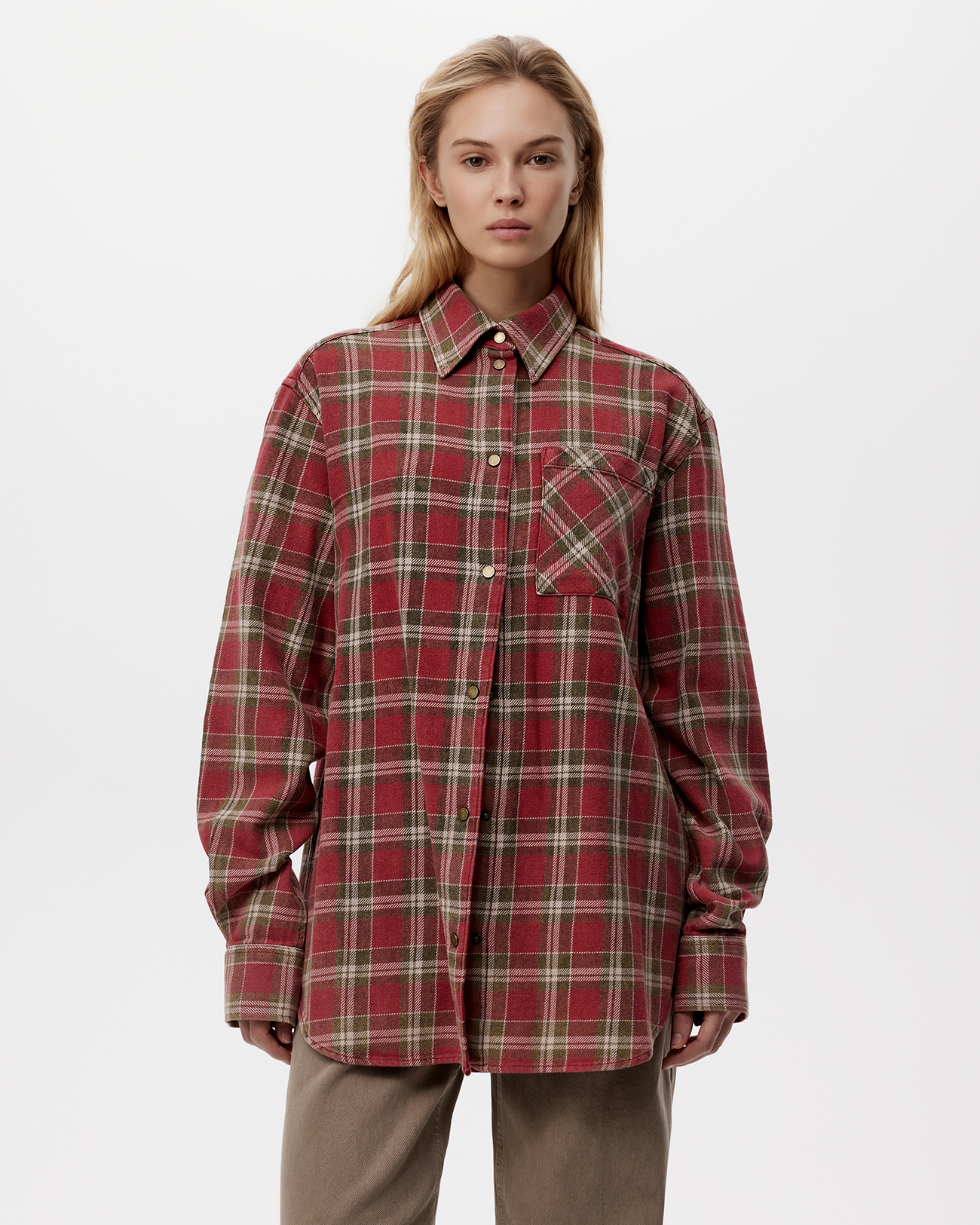 Рубашка в клетку с эффектом варки красного цвета, XS