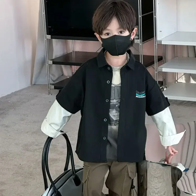 Рубашка детская демисезонная однобортная составного кроя с длинными рукавами