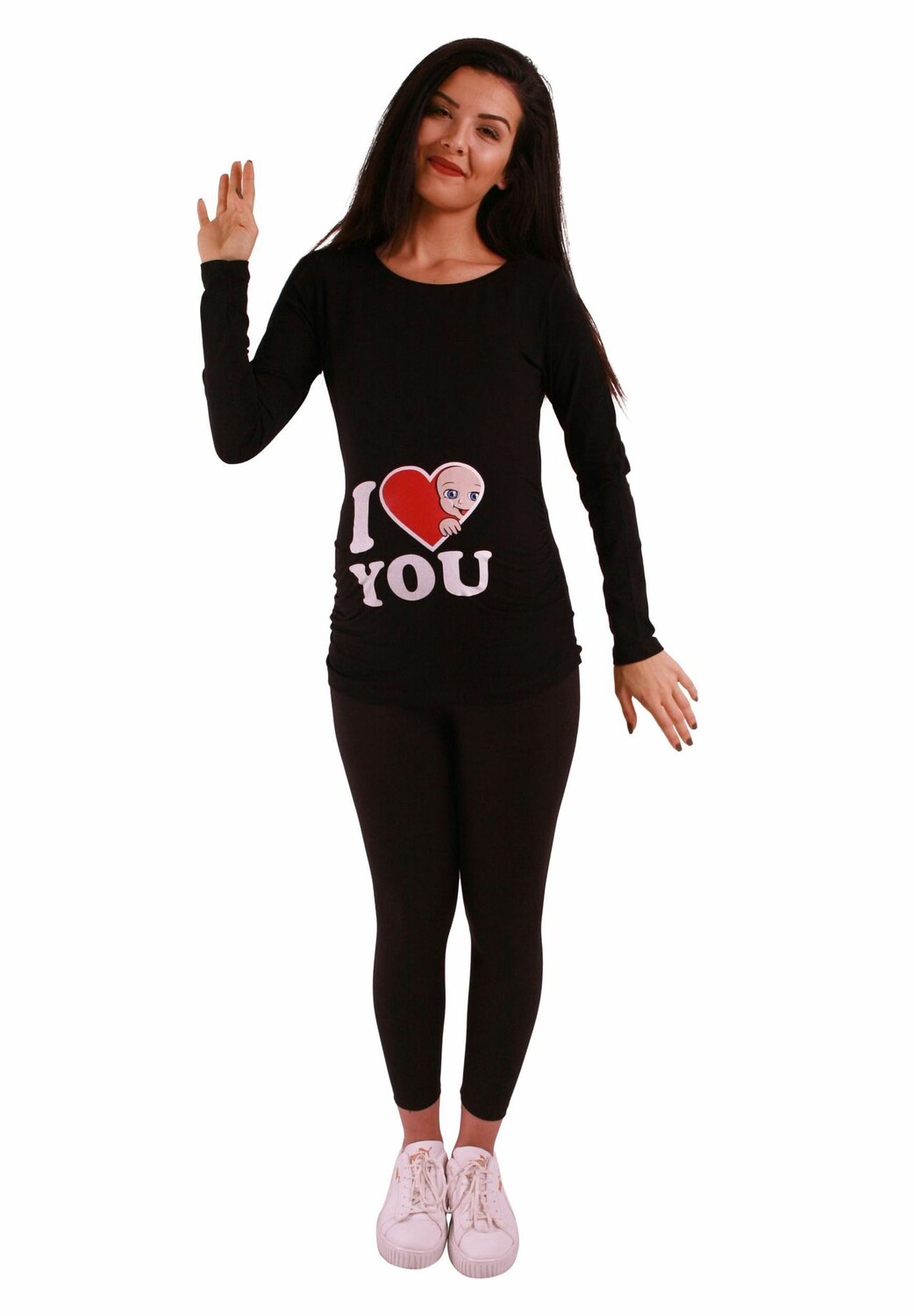 Рубашка для беременных с длинными рукавами и мотивом I Love You M.M.C., черный