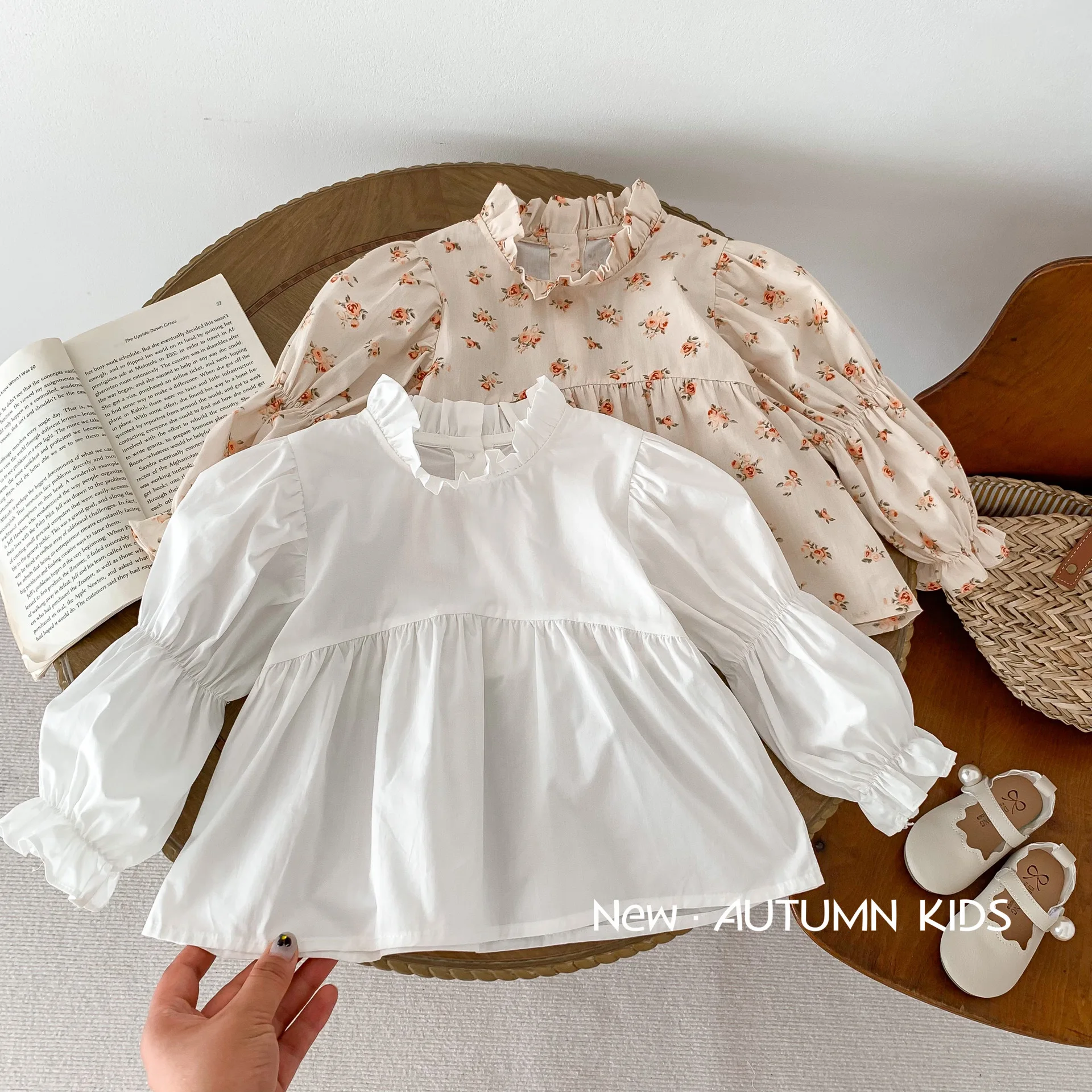 Рубашка для девочек с цветочным принтом и куклой, осенняя рубашка с рукавами-фонариками для девочек, детская Однотонная рубашка с цветочным принтом