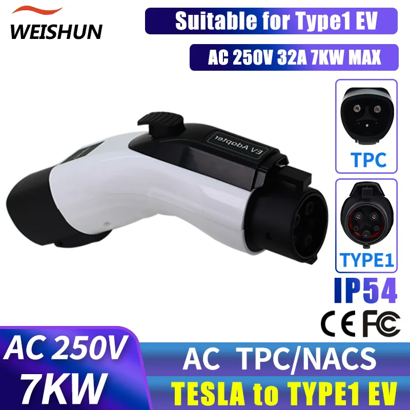 Зарядное устройство Tesla/TPC к адаптеру электромобиля Type1 Адаптер для электромобиля Tesla на Type1 EV Разъем зарядного устройства для электромобиля для 16A/32A