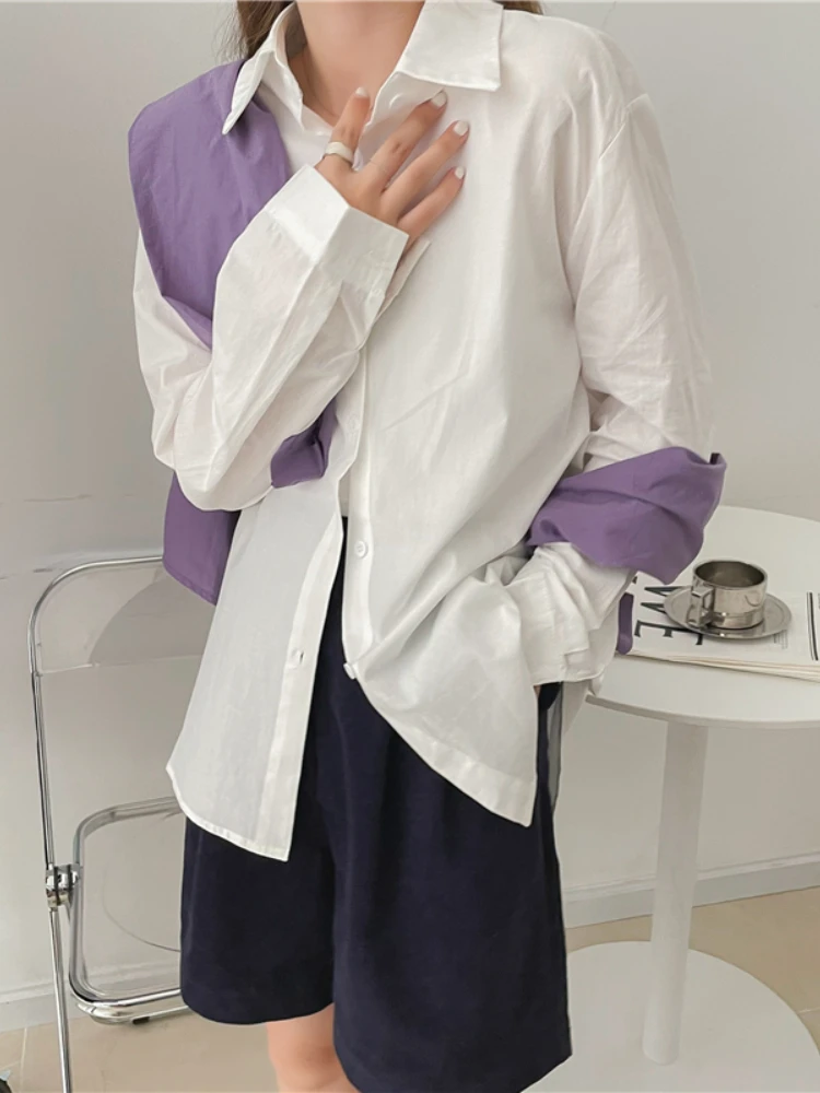 Рубашка женская Повседневная свободная, модная белая блузка, элегантный однобортный хлопковый топ с длинным рукавом, 6 цветов, на весну