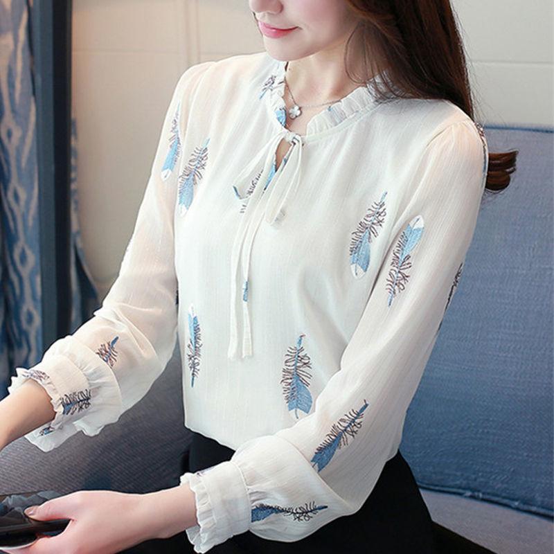 Рубашка женская корейская осенняя мода шифоновая милая супер фея с длинным рукавом верхняя часть нижняя рубашка трендовая S