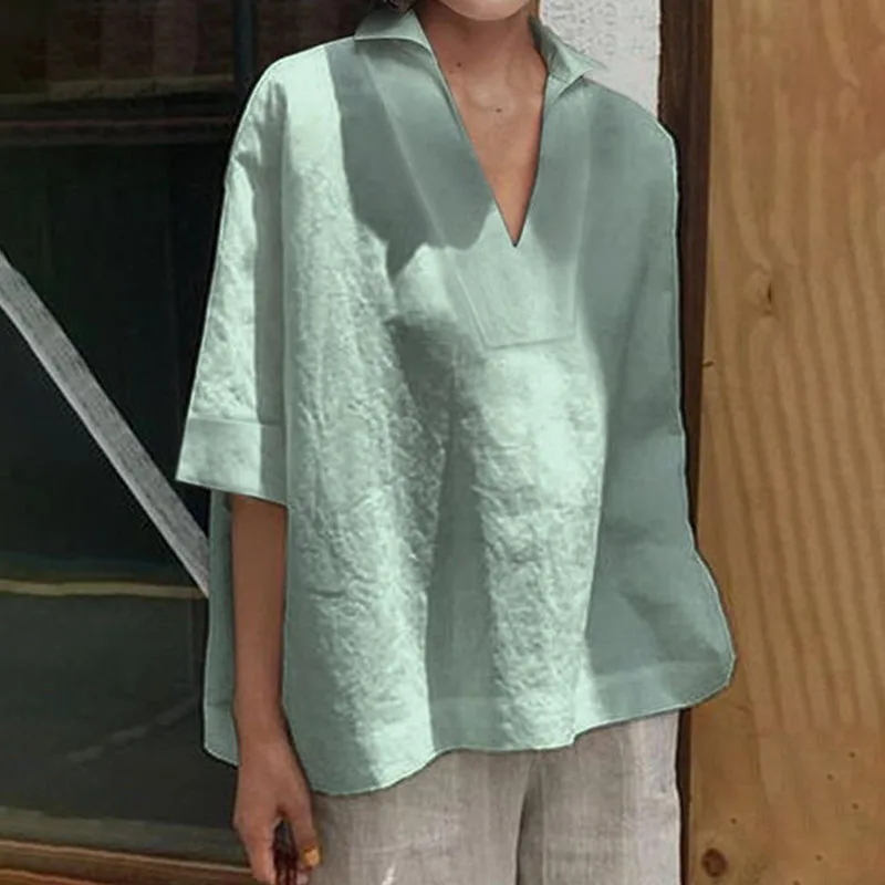 Рубашка женская однотонная свободного покроя, повседневная винтажная блузка в стиле оверсайз, модный элегантный Молодежный топ, лето 2023