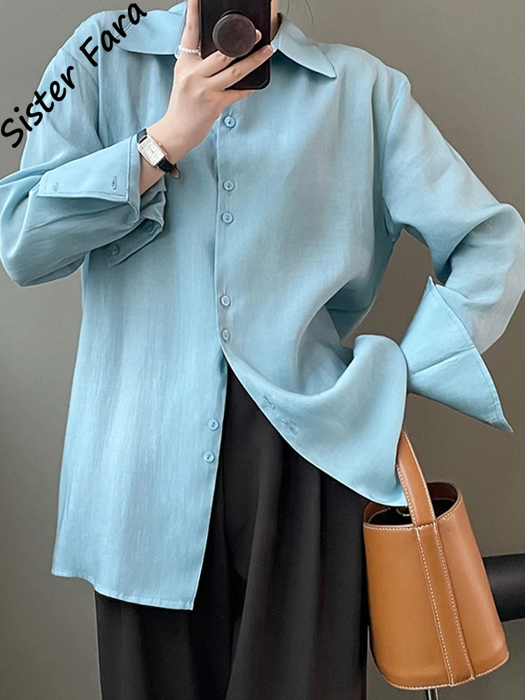 Рубашка женская с двойной пряжкой, Элегантная Шелковая блузка свободного покроя с лацканами, прямая Повседневная Блузка, на весну-осень