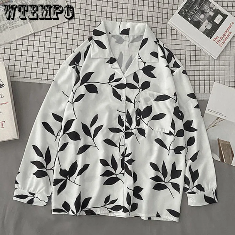 Рубашка женская с длинным рукавом, повседневный Свободный кардиган с цветочным принтом, на пуговицах, в Корейском стиле, белый, черный цвет