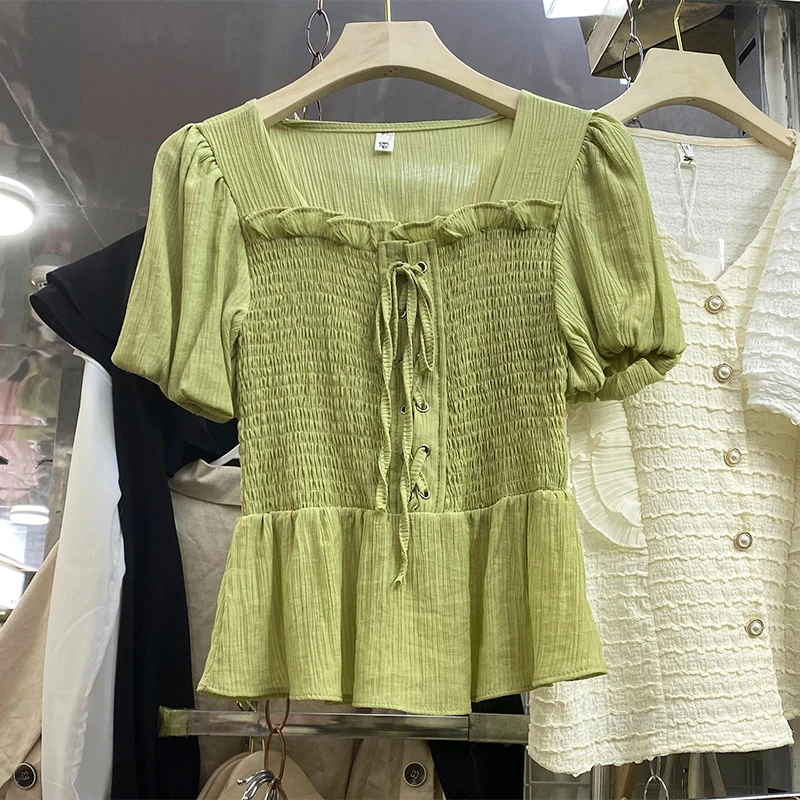 Рубашка женская с оборками, квадратным вырезом и рукавами-фонариками