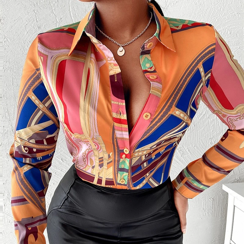 Рубашка женская с отложным воротником, на пуговицах, с длинным рукавом