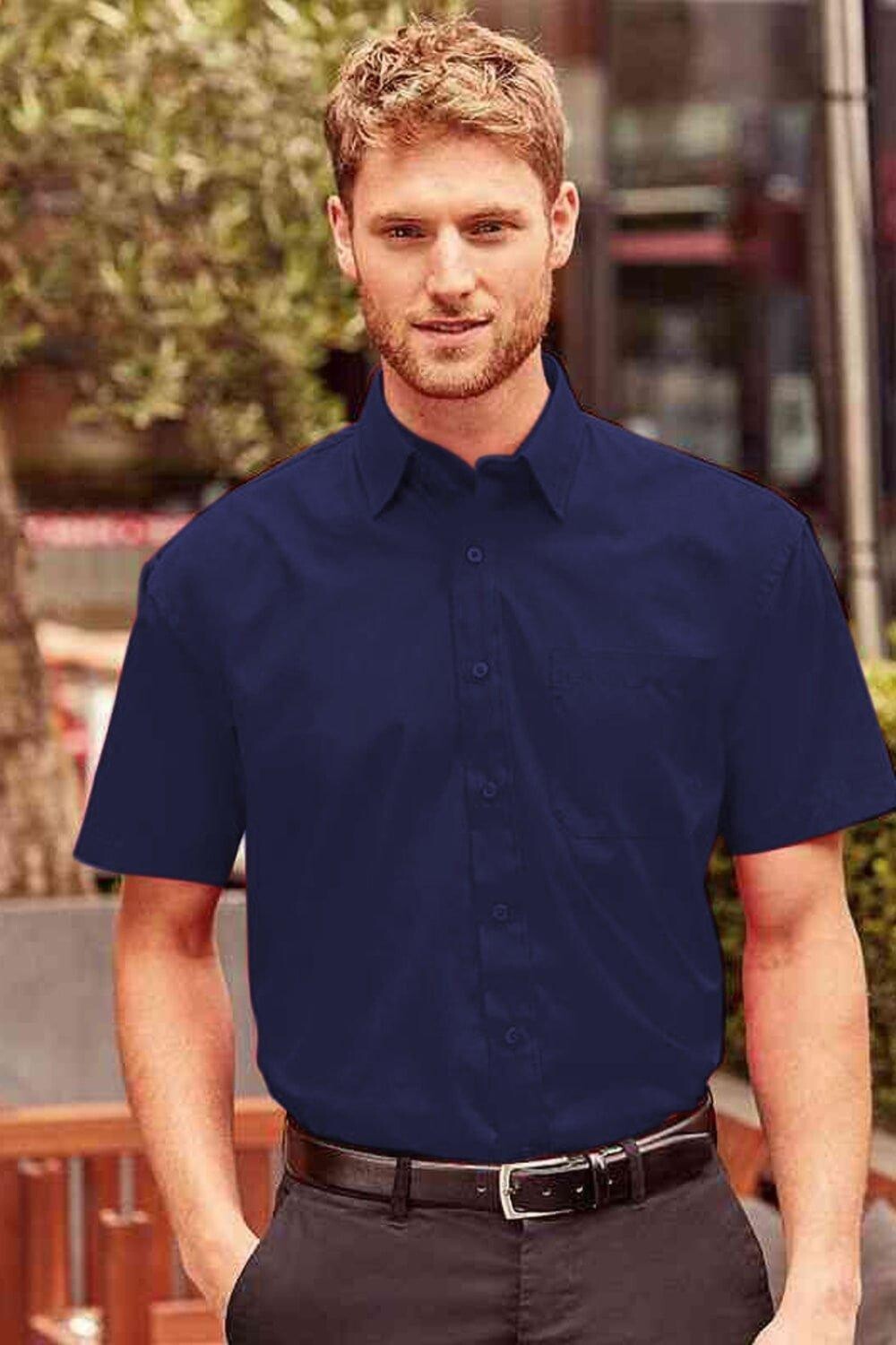 Рубашка из легкого в уходе поплина из полихлопка с короткими рукавами Collection Collection Russell, темно-синий