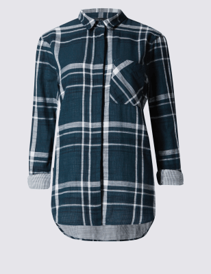 Рубашка из чистого хлопка с длинным рукавом, Синий микс