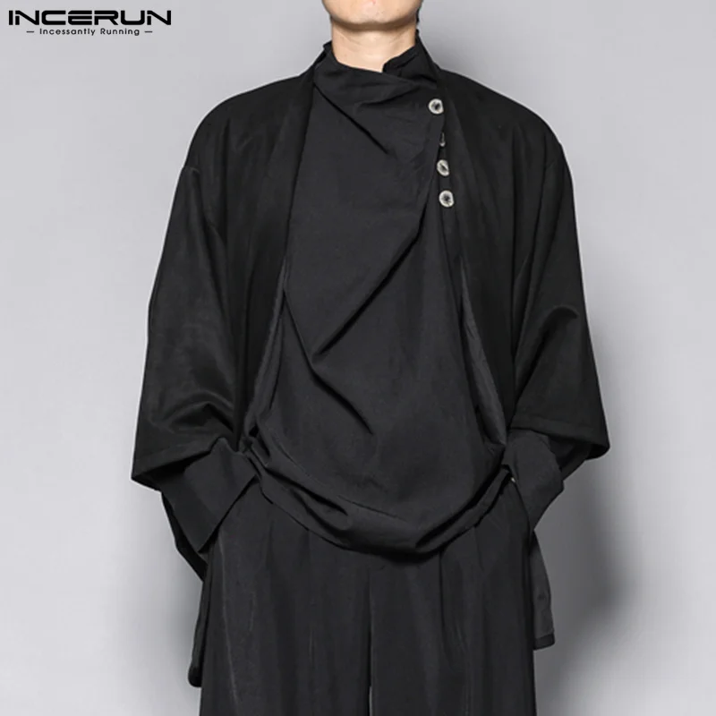 Рубашка мужская Асимметричная однотонная с воротником-стойкой и длинными рукавами