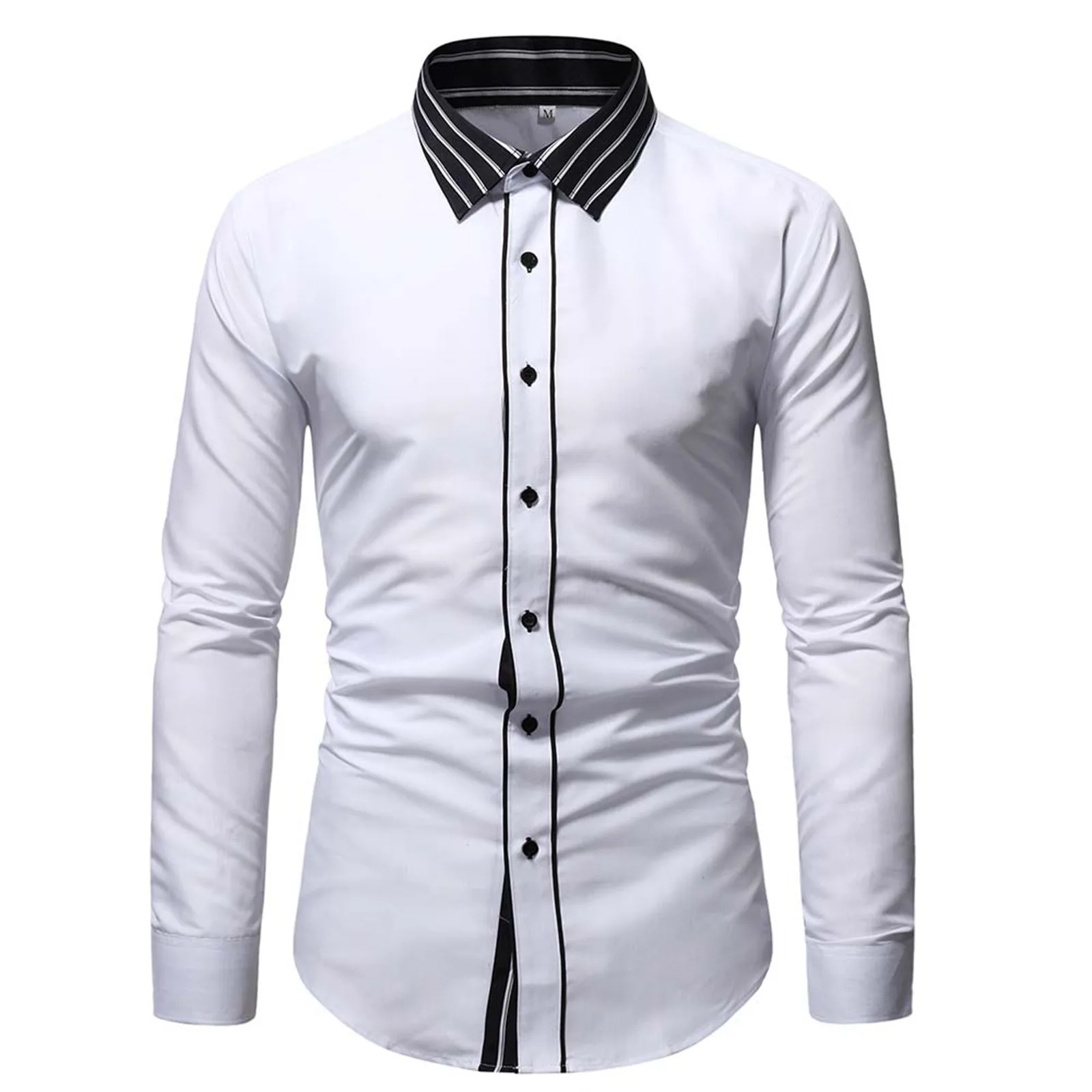 Рубашка мужская в полоску, с отложным воротником и длинным рукавом