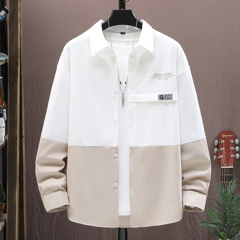 Рубашка мужская с длинным рукавом, модная блузка с соединением, Офисная верхняя одежда