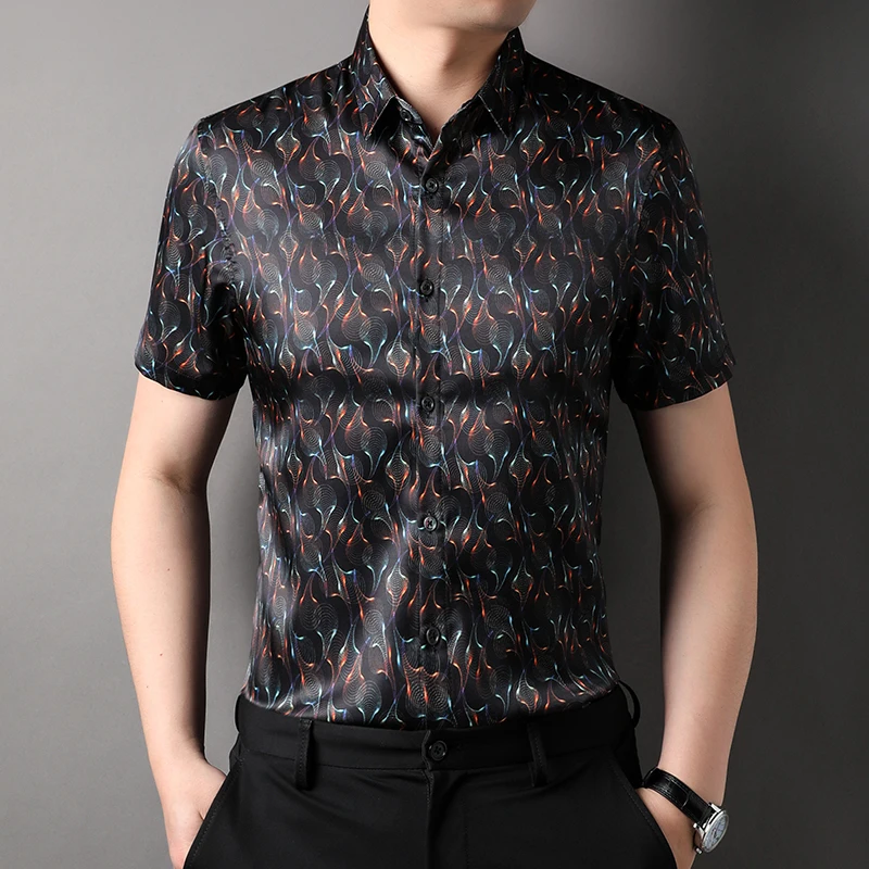 Рубашка мужская с коротким рукавом, дизайнерская шелковистая, гладкая, удобная, для банкета, лето