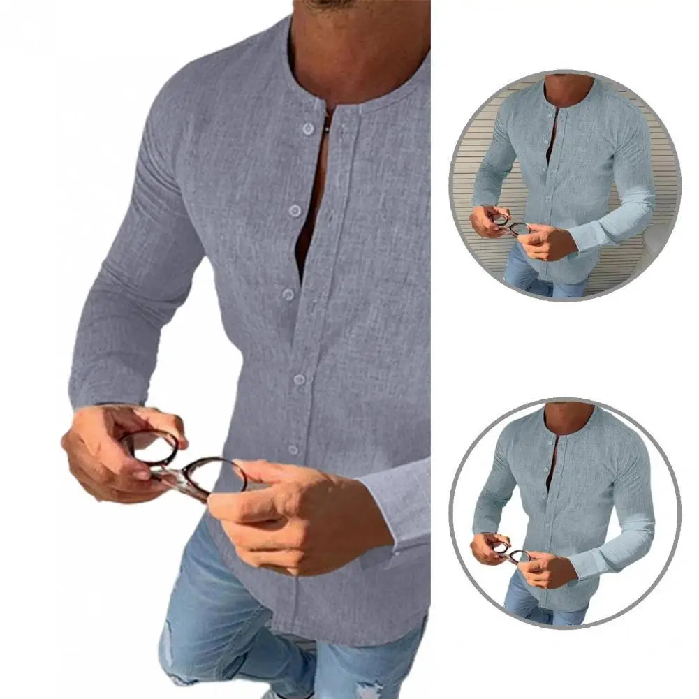 Рубашка мужская с круглым вырезом, Стильная сорочка с длинным рукавом, подходит для осени