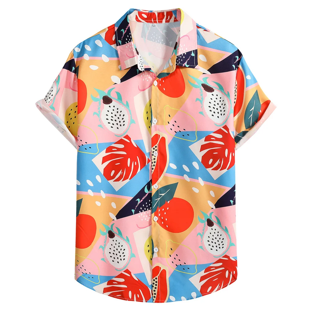 Рубашка мужская с 3D-принтом арбуза, топ оверсайз с коротким рукавом, пляжная одежда для отпуска, гавайская одежда, лето