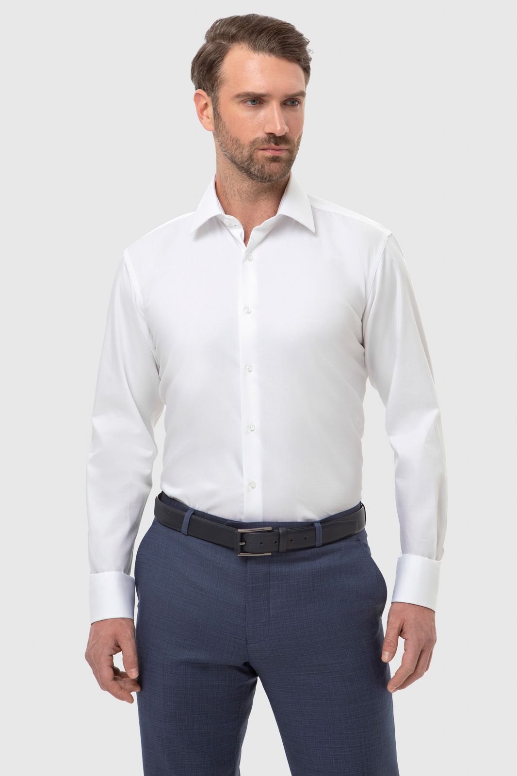 Кипенно-белая сорочка KANZLER приталенного кроя (slim fit) выглядит предельно лаконичной и элегантной. Она станет универсальным решением для вашего делового гардероба, предлагая идеальный баланс между стилем и комфортом. Изготовленная из тонких волокон премиального хлопка, сорочка обеспечивает отличную воздухопроницаемость и приятные тактильные ощущения, сохраняя при этом безупречный вид на протяжении всего дня. Тщательно выверенный крой гарантирует удобную посадку по фигуре, а классический рубашечный воротник, лаконичная фурнитура и манжеты на пуговицах делают сорочку подходящей для любых формальных мероприятий, офиса или важной встречи. Базовая белая рубашка легко комбинируется с костюмами, галстуками и различными аксессуарами и позволяет создавать разнообразные сочетания. Материал: