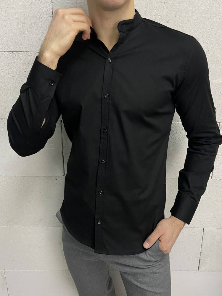 Крутая однотонная рубашка чёрного цвета