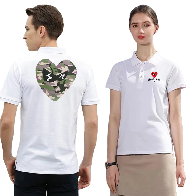 Рубашка-поло Мужская/Женская прямая из полиэстера с вышивкой в виде сердца