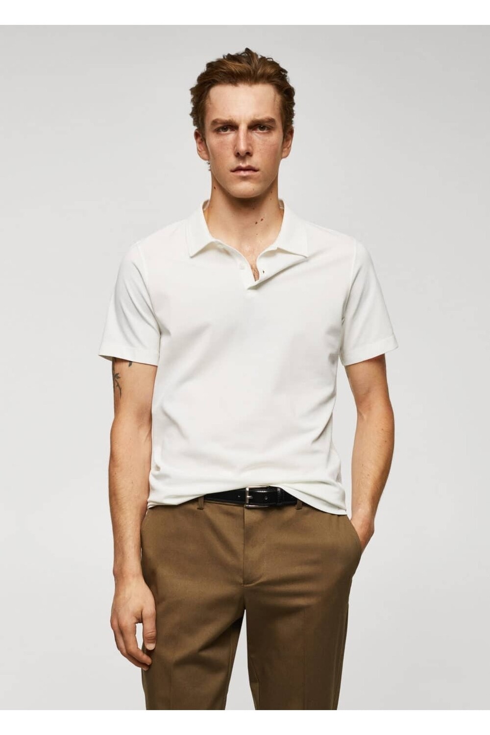 Рубашка поло из текстурированного хлопка Slim Fit Mango, белый