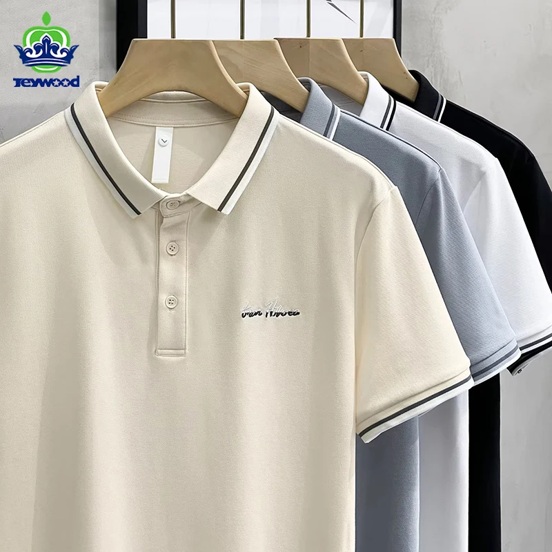 Рубашка-поло мужская с вышивкой, брендовая одежда, дышащий топ с коротким рукавом, деловая повседневная майка цвета хаки, 4XL, на лето