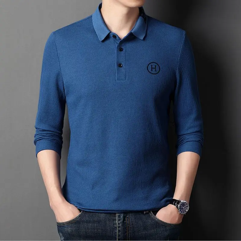 Рубашка-поло мужская с длинным рукавом, модная повседневная свободная футболка с буквой H, однотонная уличная одежда в Корейском стиле, 5XL, в...