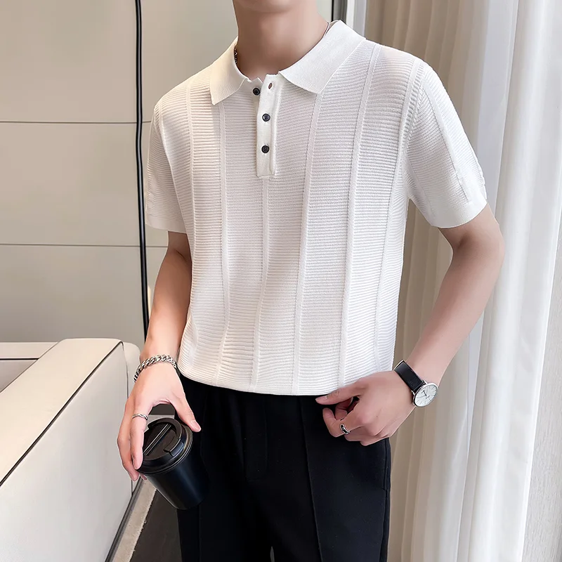 Рубашка-поло мужская с коротким рукавом, модная повседневная сорочка с лацканами, на пуговицах, однотонная Дизайнерская одежда, лето 2023