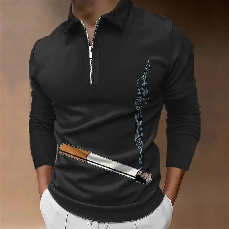 Рубашка-поло мужская с 3D-принтом, уличная одежда с принтом граффити, на молнии, Спортивная уличная одежда, рубашка для гольфа