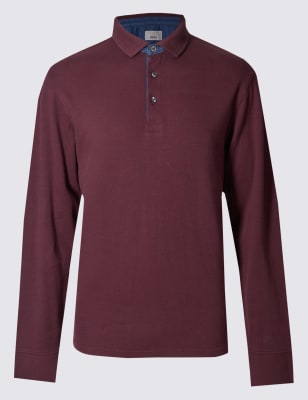 Рубашка-поло с длинным рукавом из чистого хлопка с вставками из денима