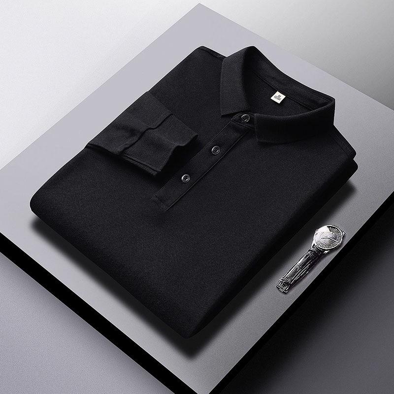 Рубашка поло с длинным рукавом, мужская, весенне-осенняя, легкая, деловая, повседневная, с лацканами, молодежная, однотонная футболка, одежда для папы 3XL
