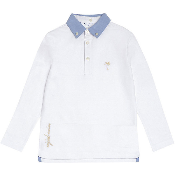 Базовая рубашка с контрастным воротником поло. Прямой комфортный крой, удлинённая спинка. Вышитая надпись бренда и принт на груди. Натуральная ткань, из которой изготовлена модель, обеспечивает хороший воздухообмен.