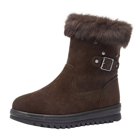 Snow Boots for Women Women s Velvet Foot Boots Warm Solid Plus Snow Color Buckle Decorative Women s Boots Suede Dress Sandals for Women Brown