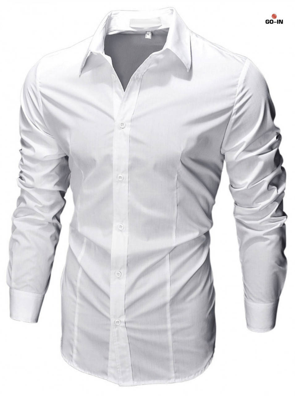 Рубашка приталенная белая мужская с длинным рукавом однотонная.