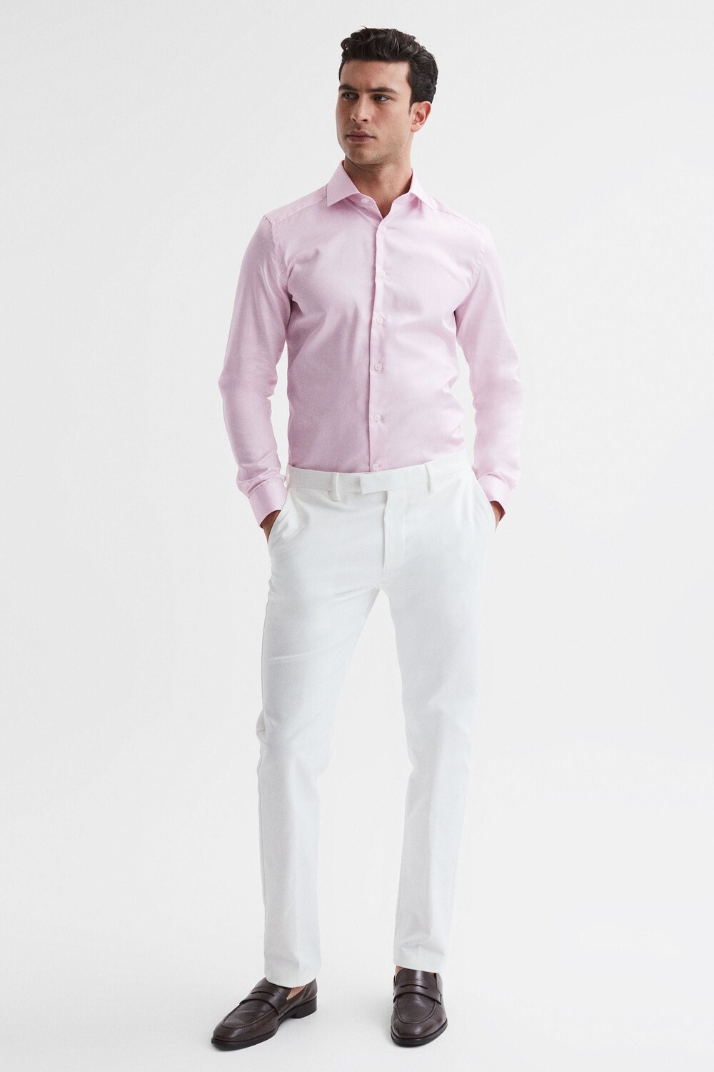 Рубашка приталенного кроя из хлопкового атласа Remote Reiss, розовый