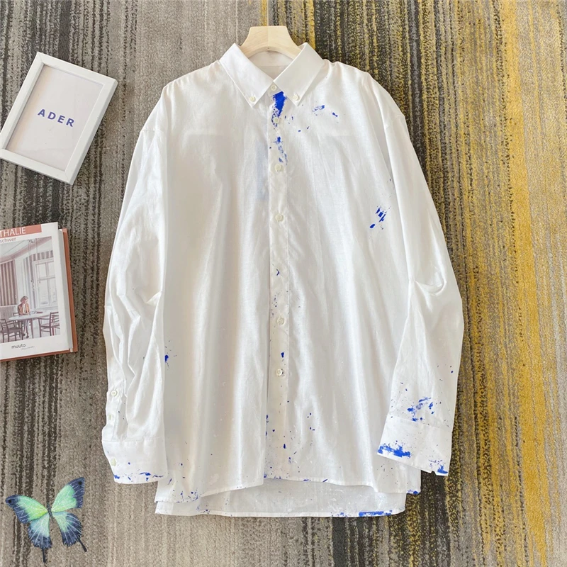 Рубашка с граффити для мужчин и женщин, блузка с лакокрасочными пятнами, цвет белый