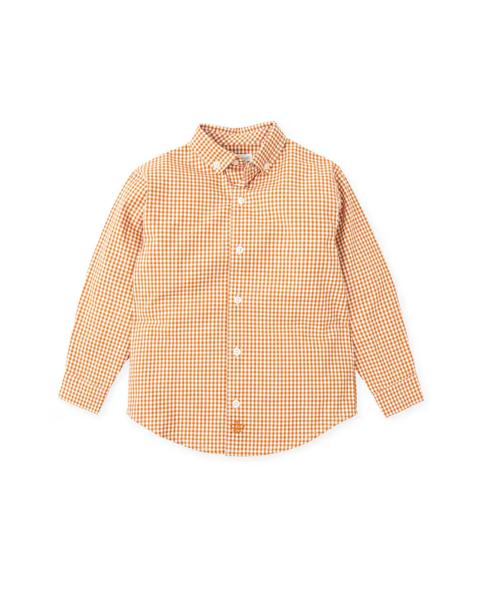 Рубашка с длинными рукавами для мальчика в клетку в мелкую клетку Tutto Piccolo, оранжевый